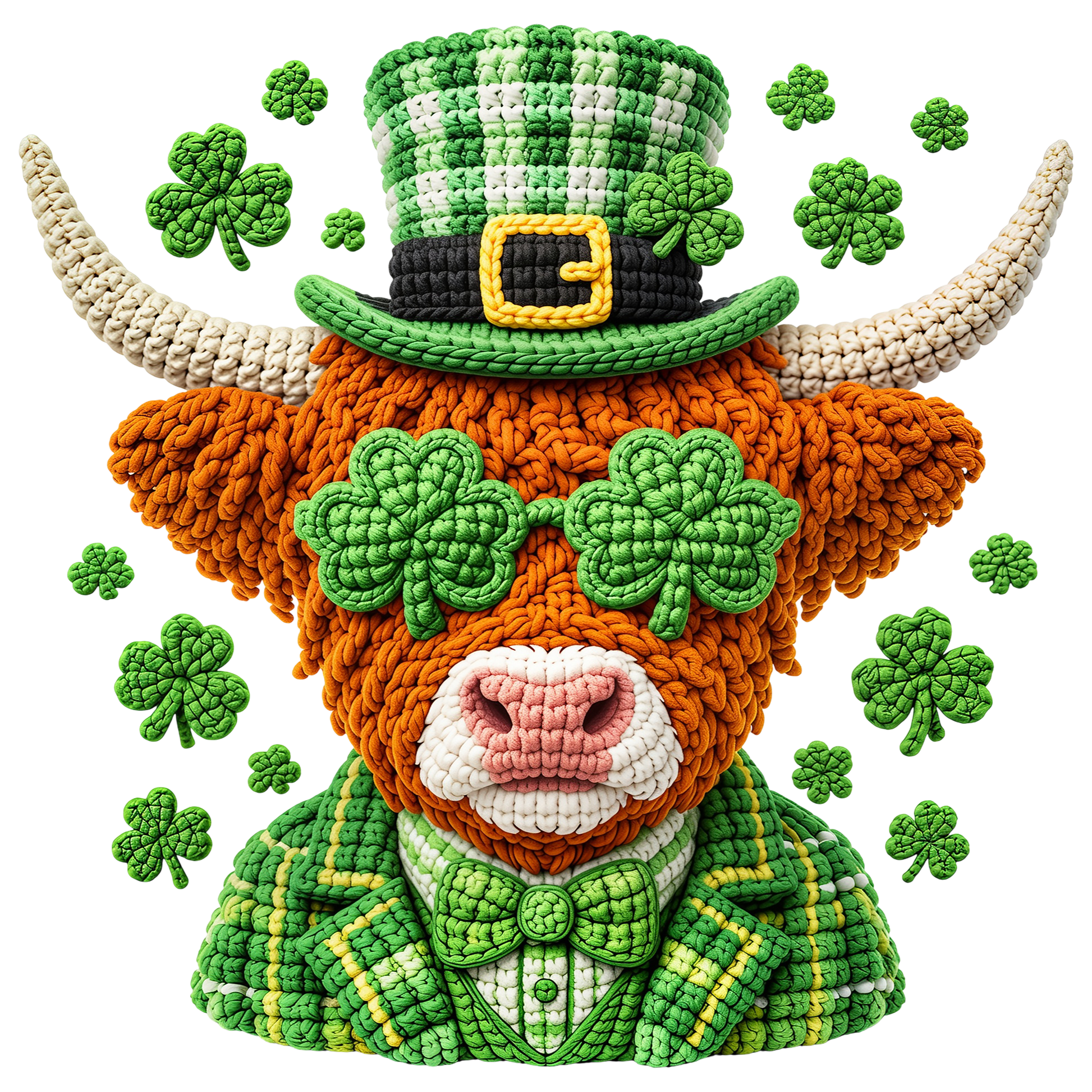 St. Patrick's Day 59 - Faux Yarn St. Patrick'S Highland Cow Png